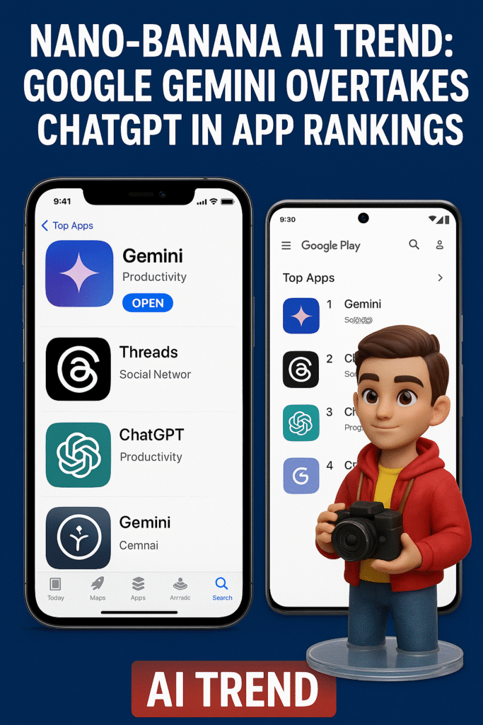 With its blend of fun, creativity, and social media buzz, the Nano-Banana trend has propelled Gemini to the top — proving once again how fast AI-driven trends can reshape the app world.