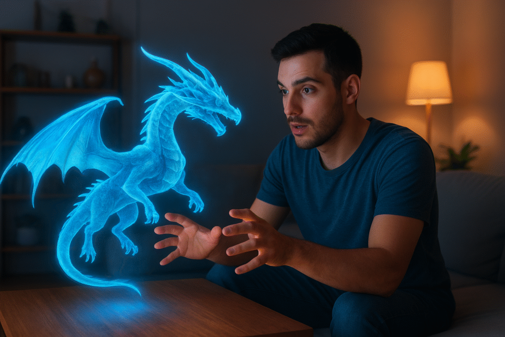 Developers are already designing “holo-ready” games that use your surroundings dynamically — your table becomes terrain, your sofa a bunker, and your pet might even react to digital characters walking by.